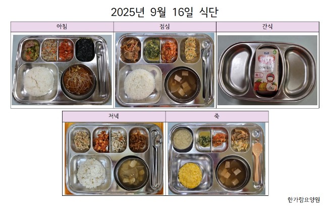 2025년 9월 16일 어르신 식단입니다. |
