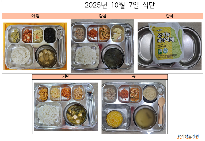 2025년 10월 7일 어르신 식단입니다. |