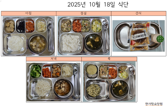 2025년 10월 18일 어르신 식단입니다. |